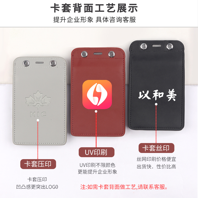Yihemei three-card large-capacity leather work card card holder with double buckle hanging neck lanyard unit on-the-job card cover staff work card chest card protective cover can customize enterprise LOGO