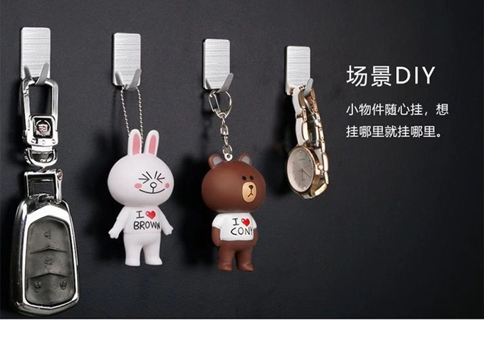 304 stainless steel punch - free hook indentation strong stick bathroom kitchen cosmetic room wall hook