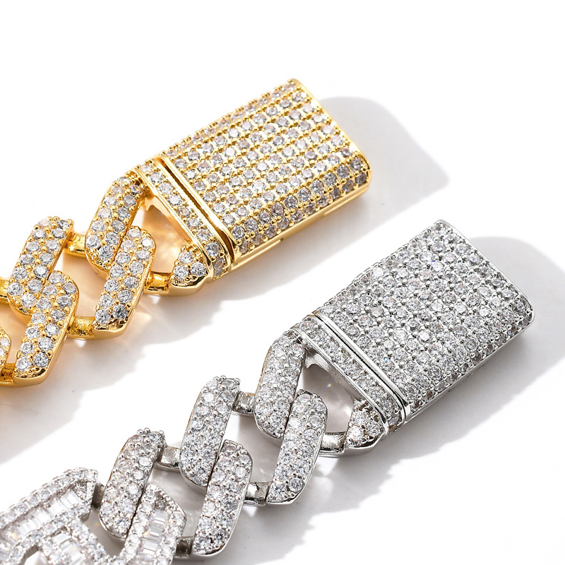 (Official) CHALAVRODW CUBAN CHAIN MALE AND FEMALE RECTANGULAR CONTAINMENT CHAIN FULL DRILL NECKLACE