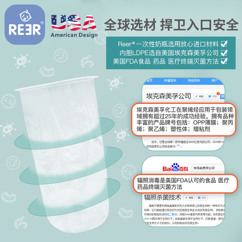 reer bottle Newborn baby disposable milk bag Drop-proof, wash-in, anti-flatulence, portable weaning artifact bottle