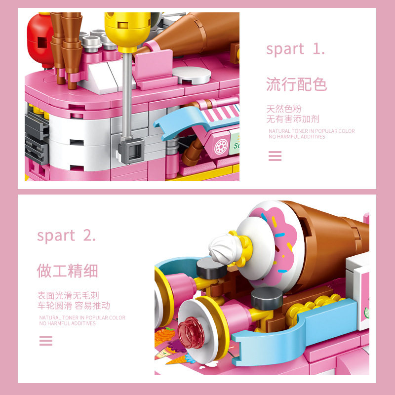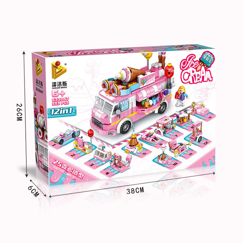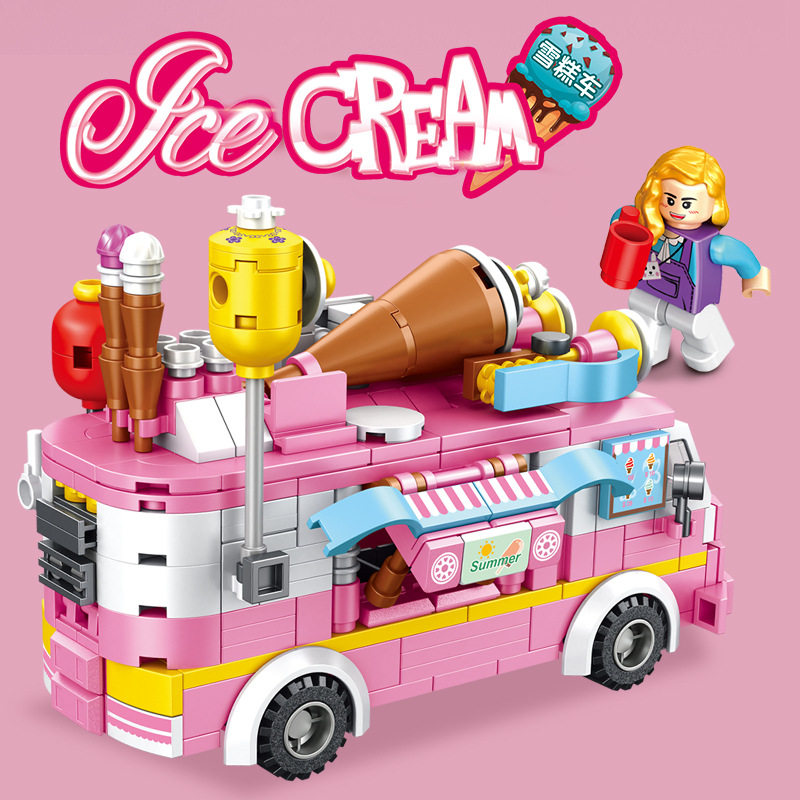 Panlos 633047 Ice Cream Car Ice Cream Truck Engineering Car Assembly Model Girl Assembled Building Blocks Parquet Toys