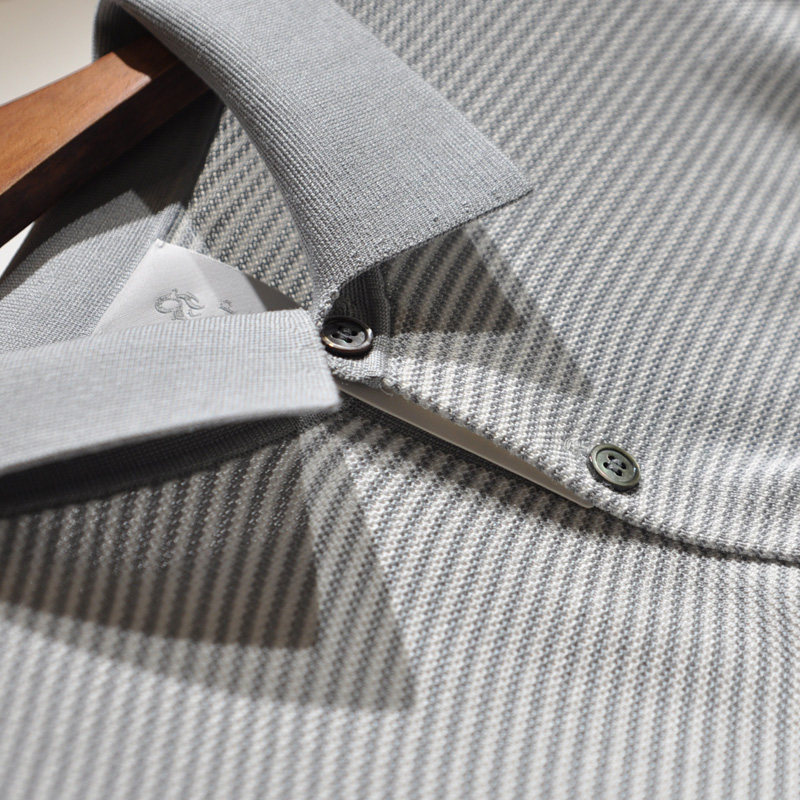 Men's pure - handed men's 100 % silky striped business leisure short - sleeve POLO T - shirt man