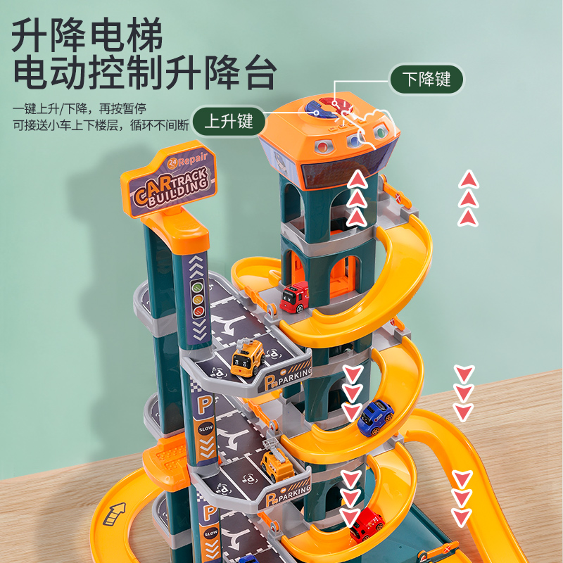 Fire-fighting model-five-story (basic version) electric track parking lot 6 vehicles Map- engineering model-five-story (upgraded version) electric track parking lot 12 cars Map- fire-fighting model-five