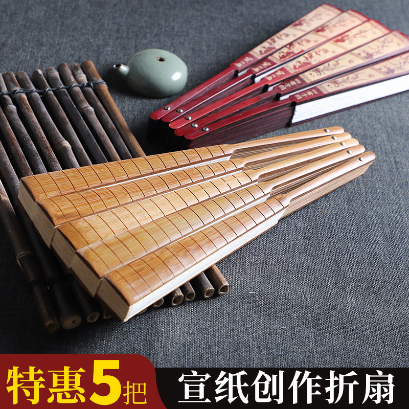 Rice Paper Folding Fan China Wind Blank Folding Fan Fan Ancient Wind Sprinkle Gold Folding Fan Custom Calligraphy Hand-painted Chinese Painting Fan Face