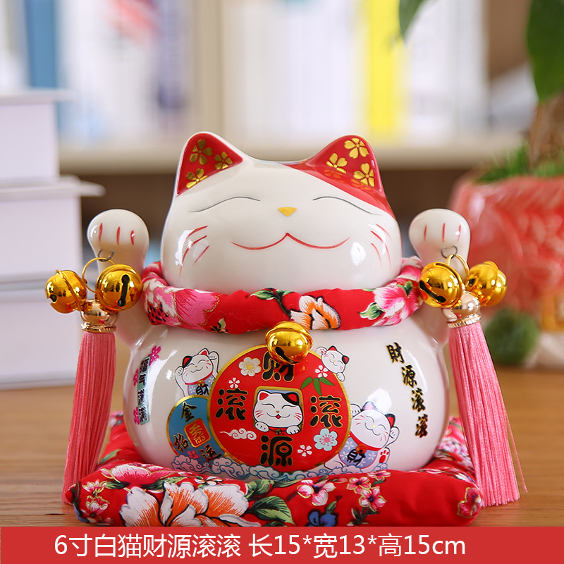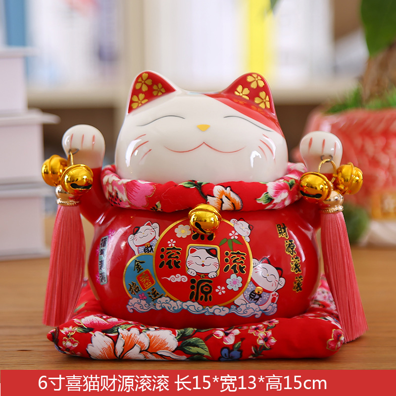 Ornament opening lucky cat gift home living room fortune cat trumpet ceramic piggy bank decoration shaking hand extra large