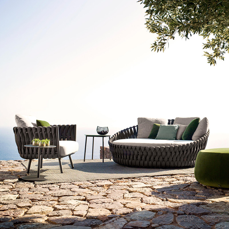 Outdoor lying bed original designer villa hotel homestay swimming pool open-air balcony leisure big sofa weaving rattan chair
