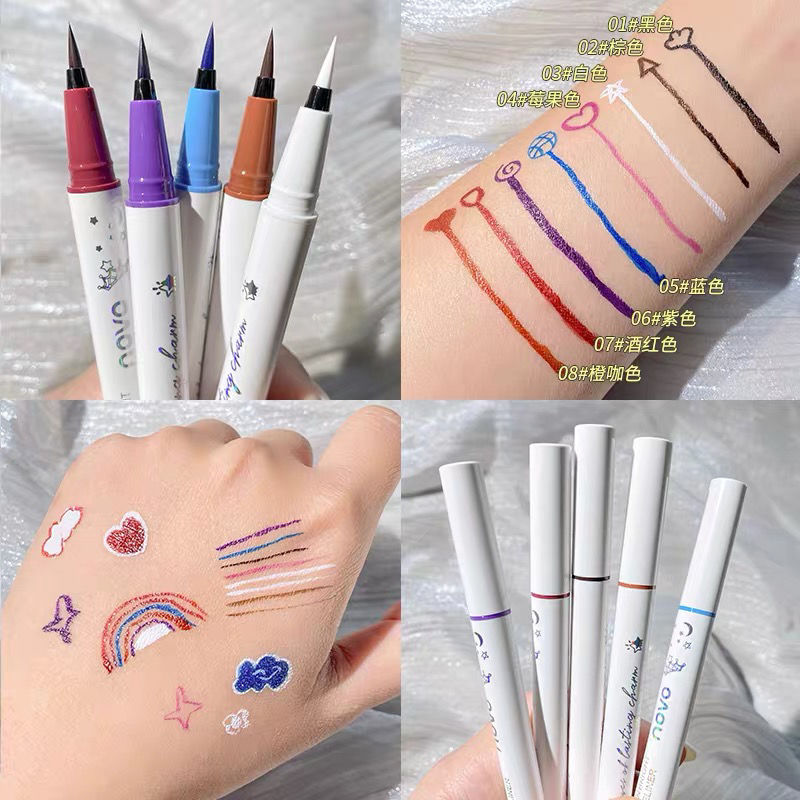 NOVO eyeline pen waterproof and sweat proof long-lasting non-faint color eyeline pen fine head new red same white