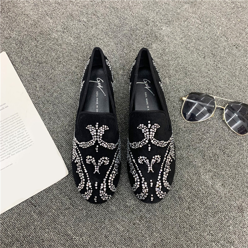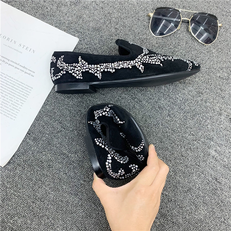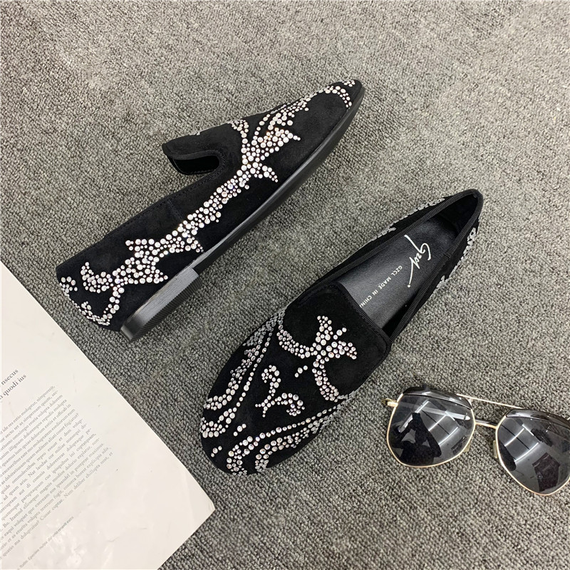 2022 new leather rhinestone peas shoes men's social spirit boy slip-on shoes men's trend summer