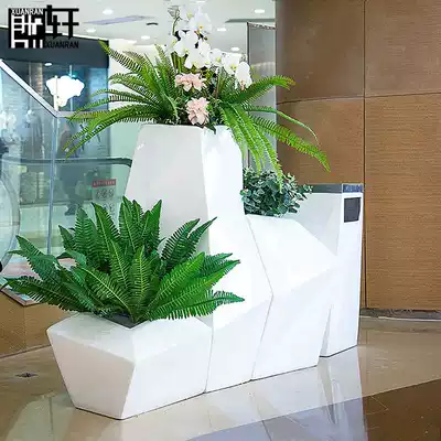 Meichen fiberglass flowerpot outdoor irregular flower bowl combination shopping mall creative diamond floor vase customization