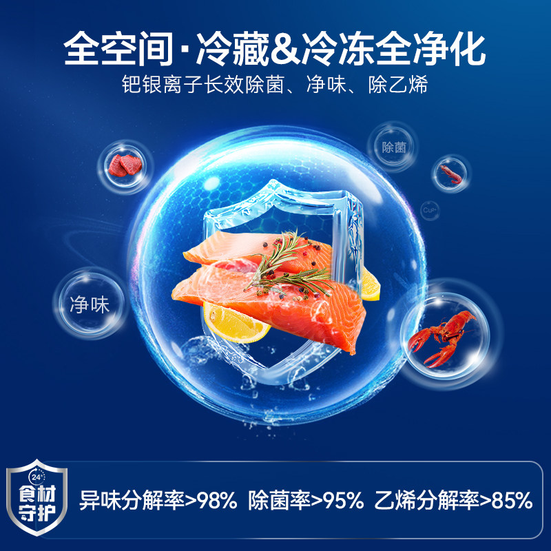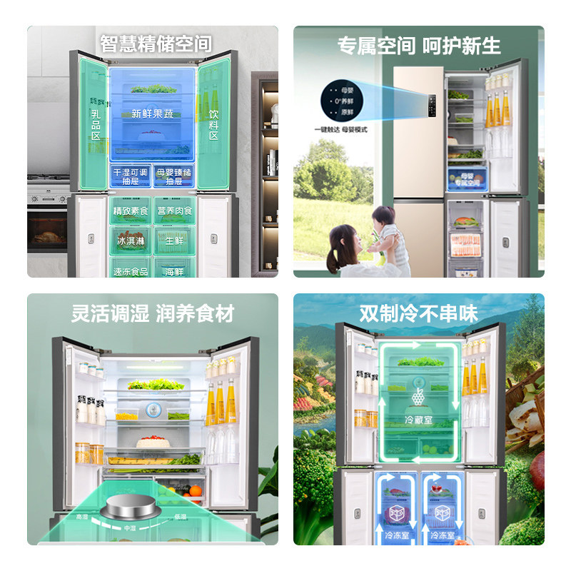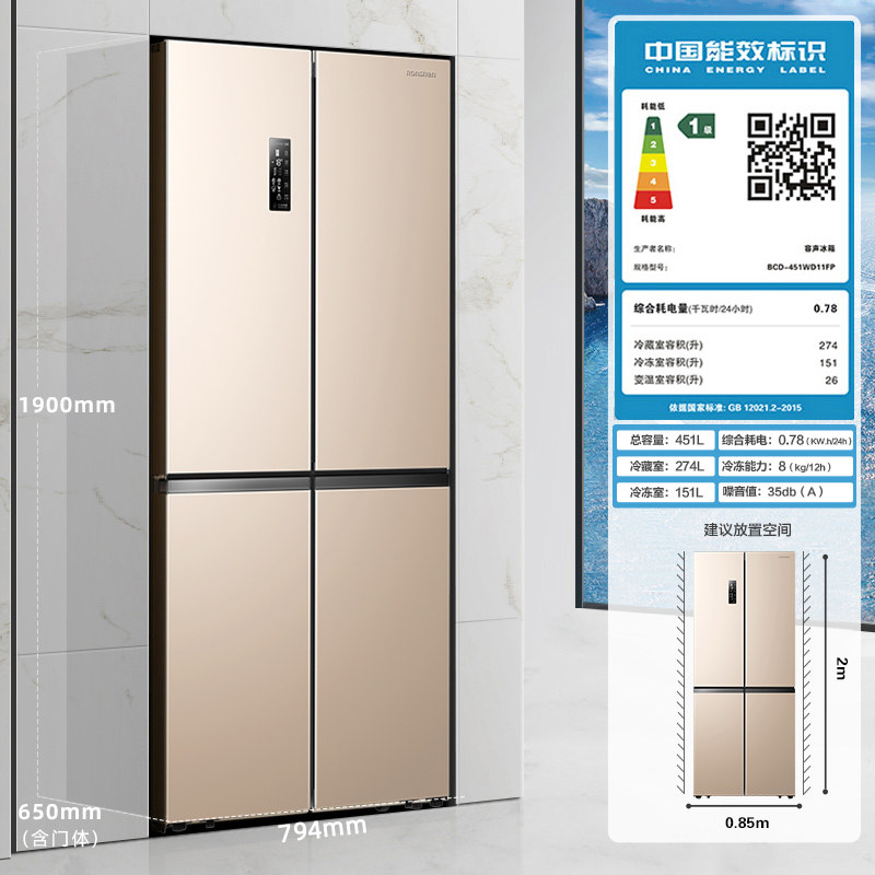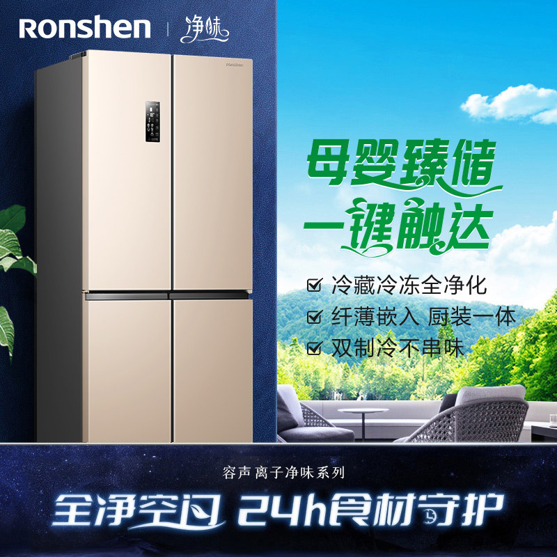 (Ion Clean Taste) Rongsheng 451L Cross Opposal Door Four-door Refrigerator Household Frequency Conversion Level I Air Cooling Official