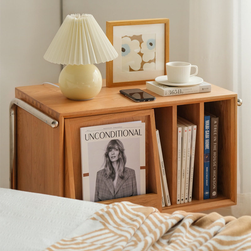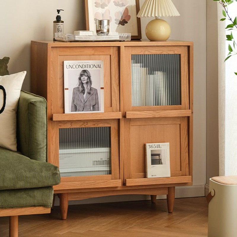 Japanese-style log sofa small side cabinet multi-functional storage cabinet Nordic solid wood magazine cabinet simple cherry wood bookcase