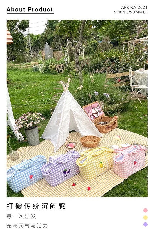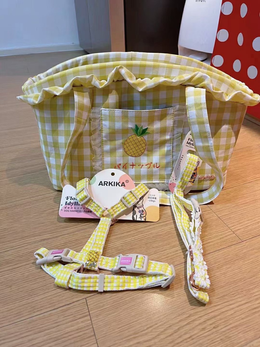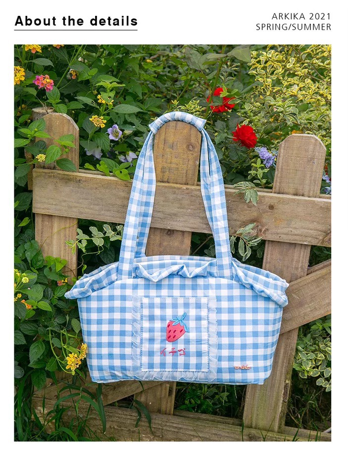 ARKIKA Tian Garden Wind Fruit Plaid Bag Traction Out Lace Cute Styling Single Shoulder Bag Pet Cat Dog Bunny Bag