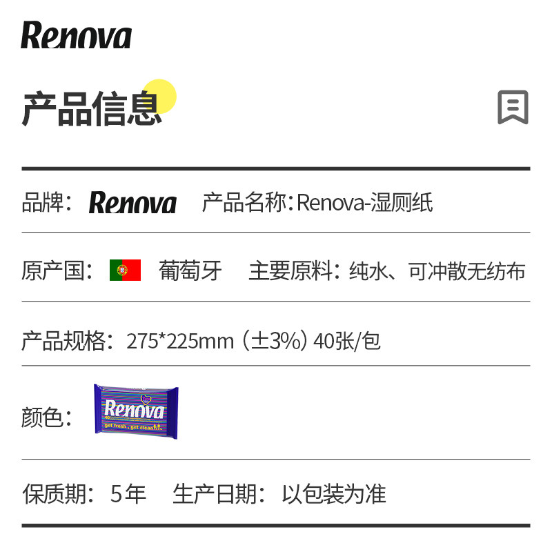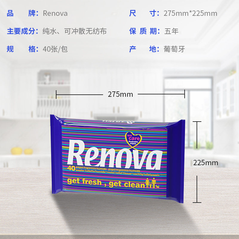 Renova Portugal imported wet toilet paper women's portable small bag to wipe the butt of the toilet wipes can flush the toilet