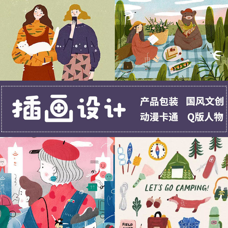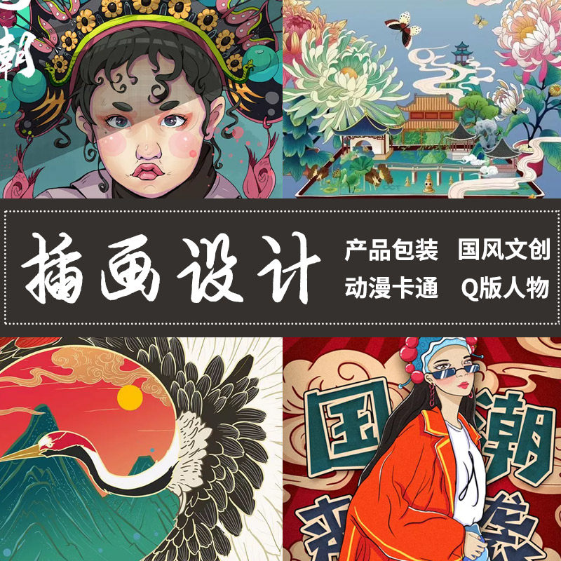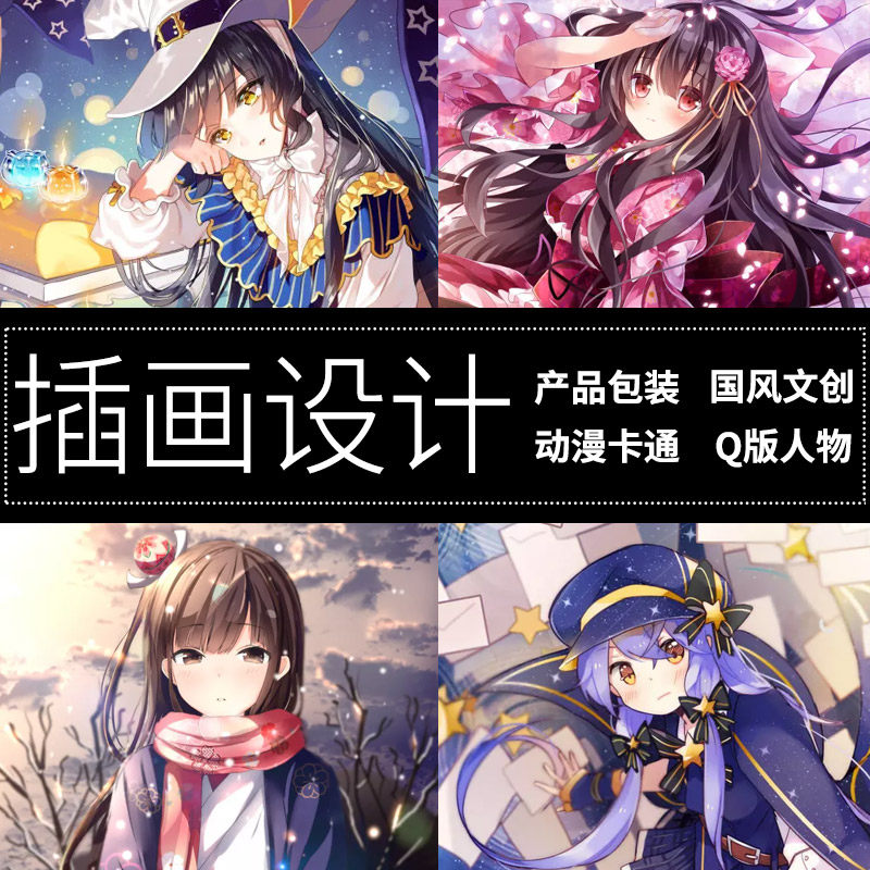 Hand-painted illustration design on behalf of the map cartoon Q version character comic picture book AI avatar Guochao PS packaging on behalf of