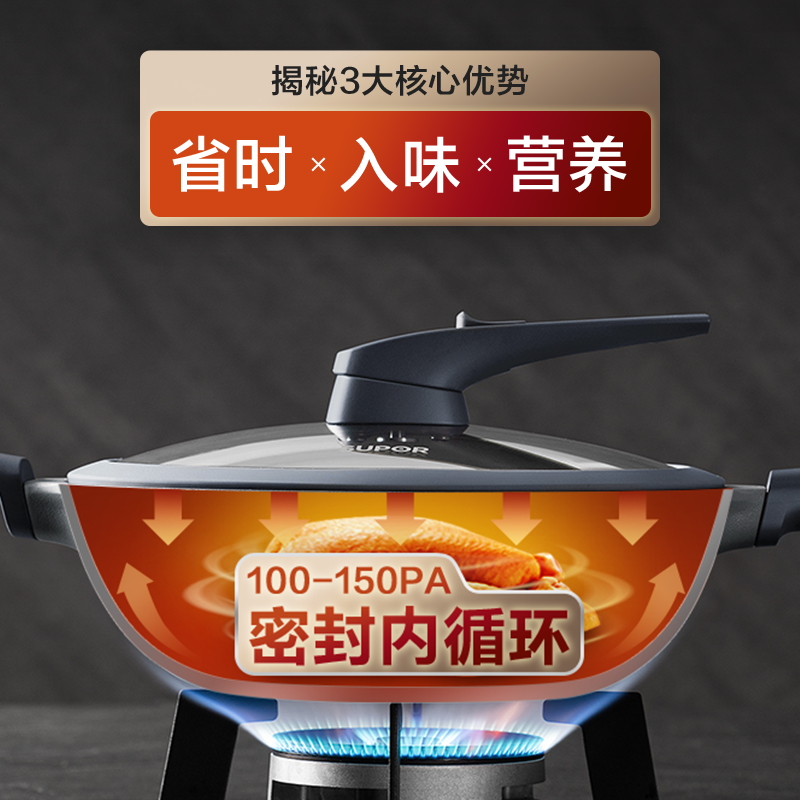 Supor non-stick wok Micro-pressure wok Household flat-bottom wok Gas stove Induction cooker suitable for official flagship store