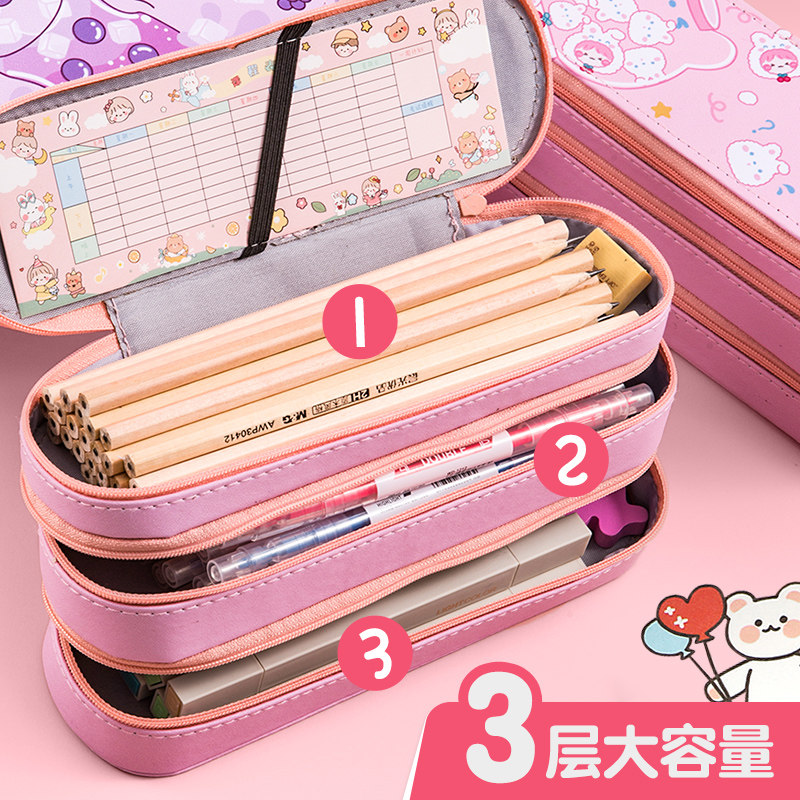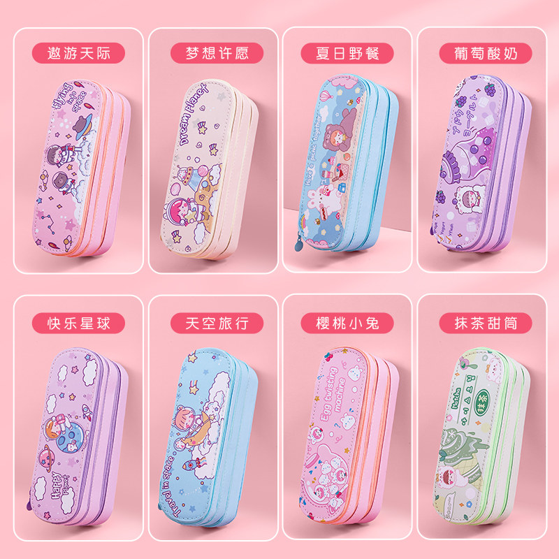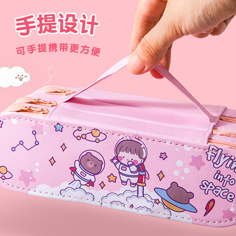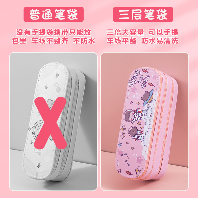 Triple Pen Bag Large Capacity Multifunction Canvas Han Edition Elementary School Student Stationery Bag Girl Hearts Ins double Junior High School Creative Men's Korean Girls Learn cute day series Little frescoed lead pencil case