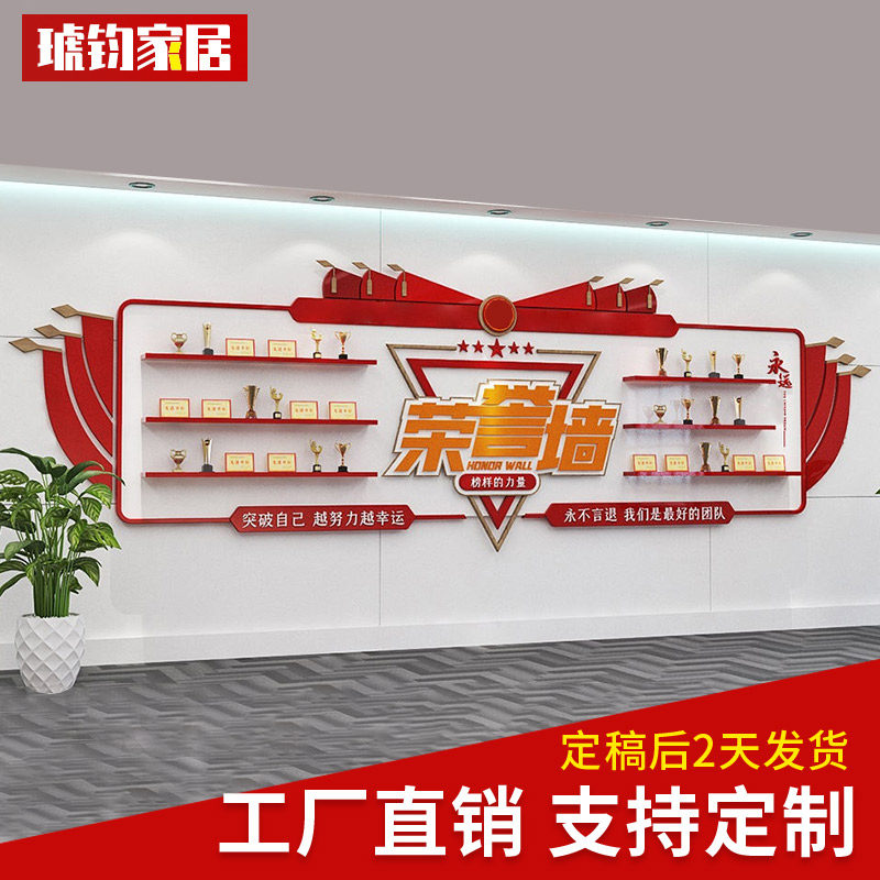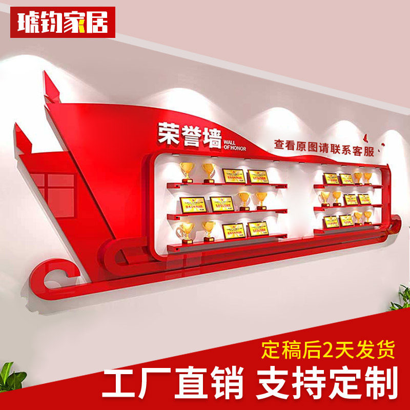 High-end Customised Company Corporate Party Building Party Branch Honorary Wall Certificate Trophy Display Background Wall Red Cultural Wall
