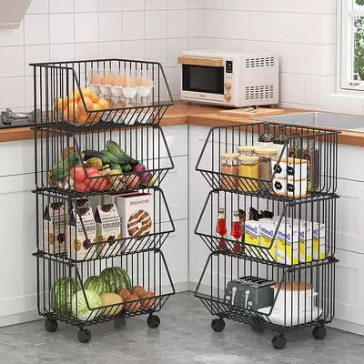 Kitchen shelf floor multi-layer movable household cart with vegetable basket basket toy storage artifact