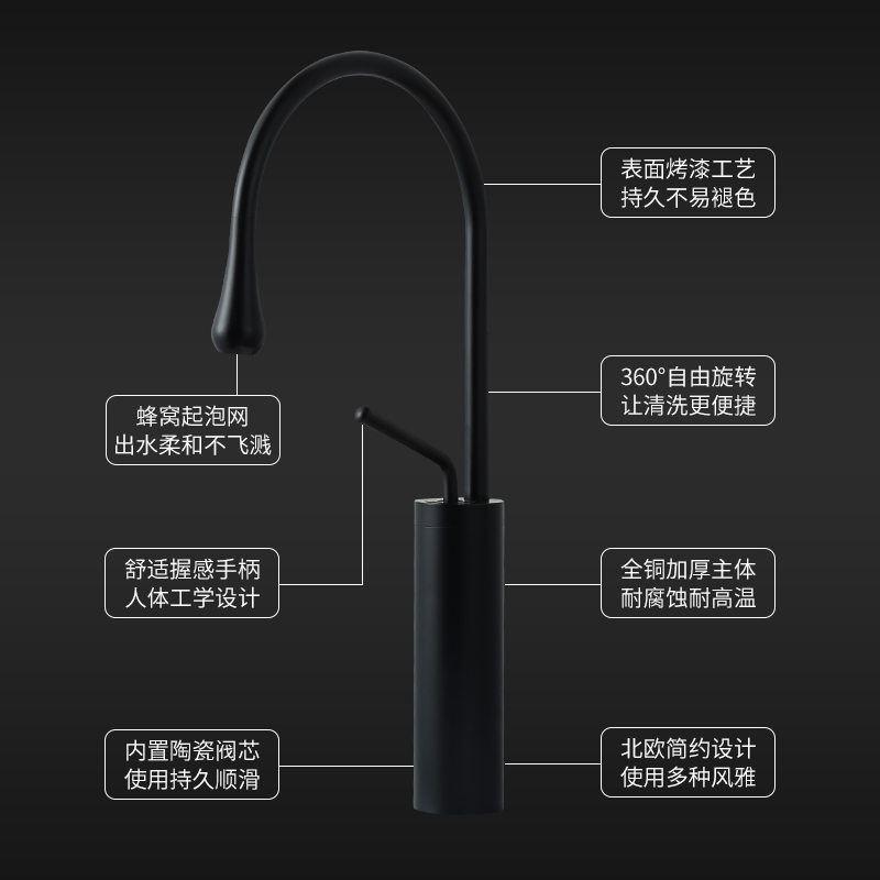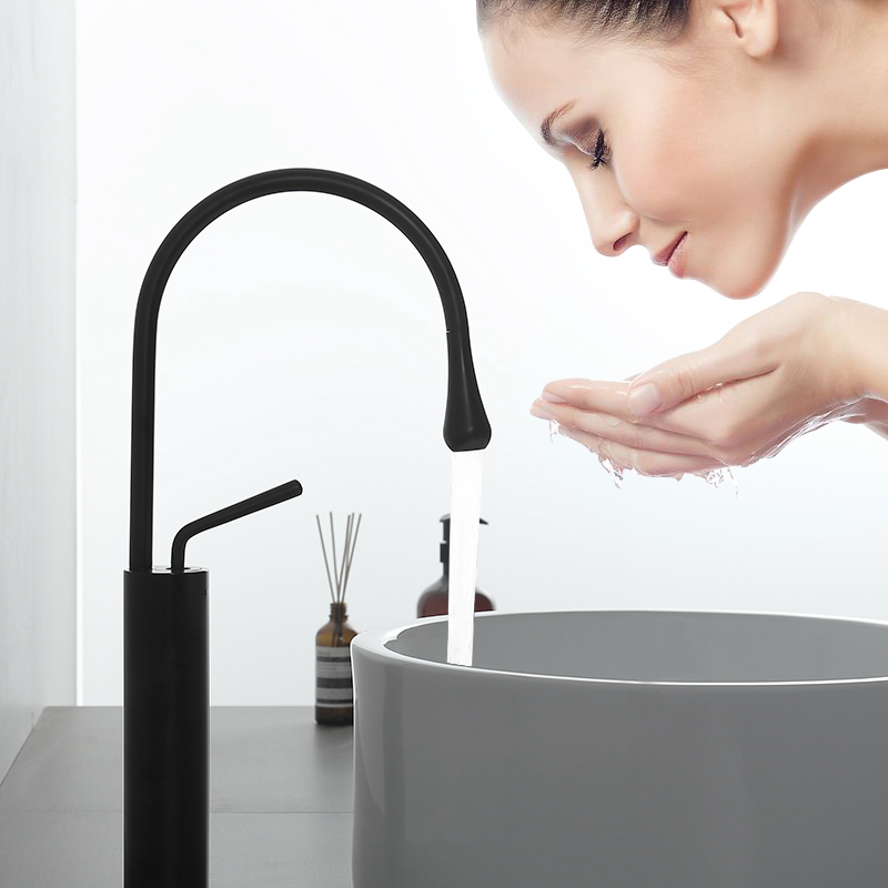 Creative personality hot and cold tap plus high surface basin single-hole washbasin tap black Nordic onstage basin tap