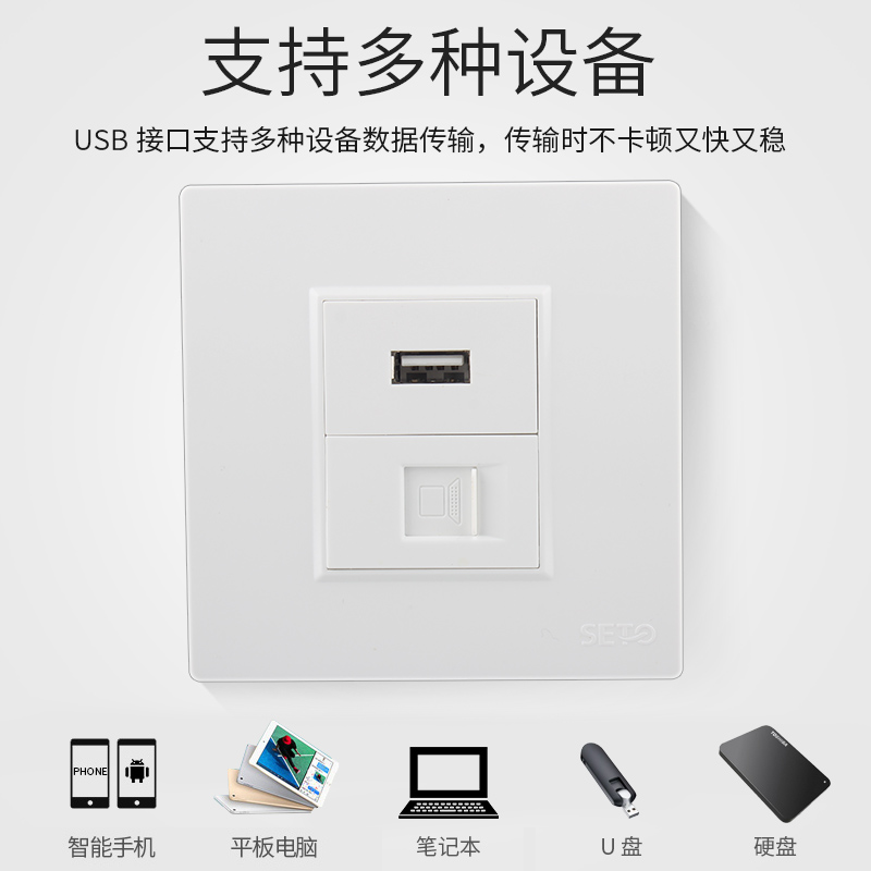 SETO SETO Type 86 data transmission usb straight plug-in over five categories of network socket panel 2 0USB straight plug panel