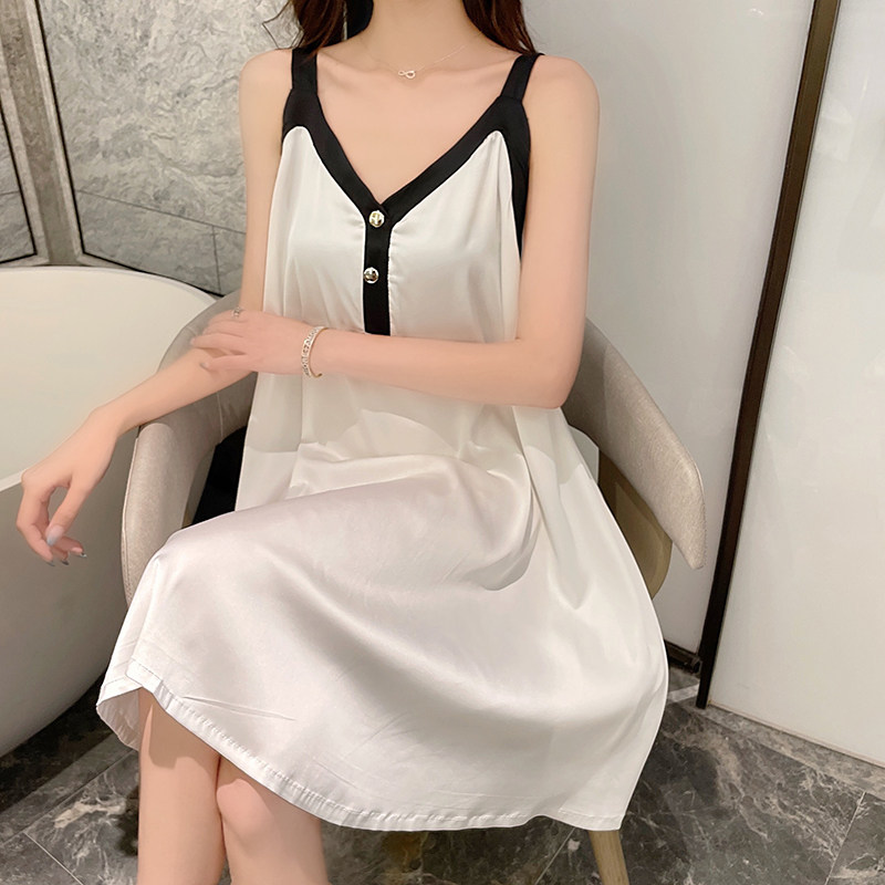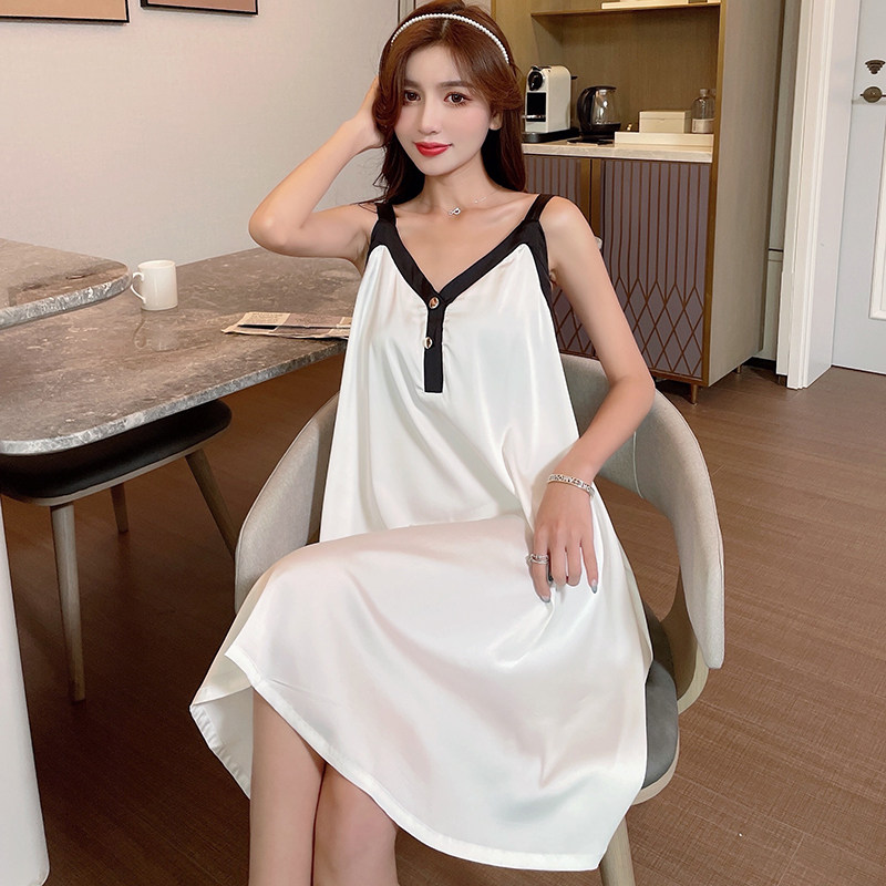 2022 New Sleepwear Women's Spring Summer Ice Silk Sexy Slim Net Red Summer Real Silk Mid-Harness Sleeping Dress