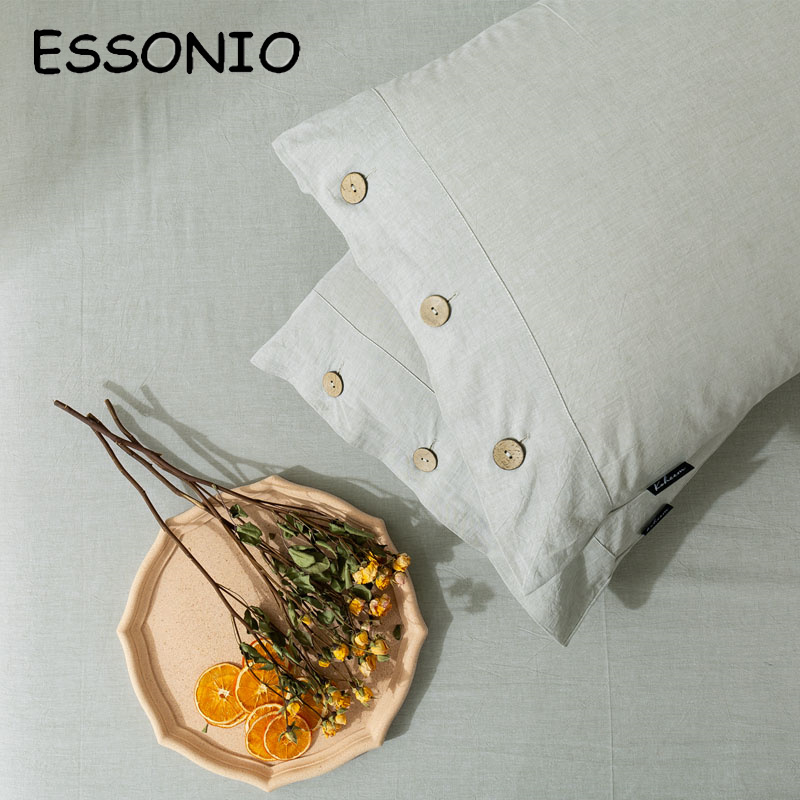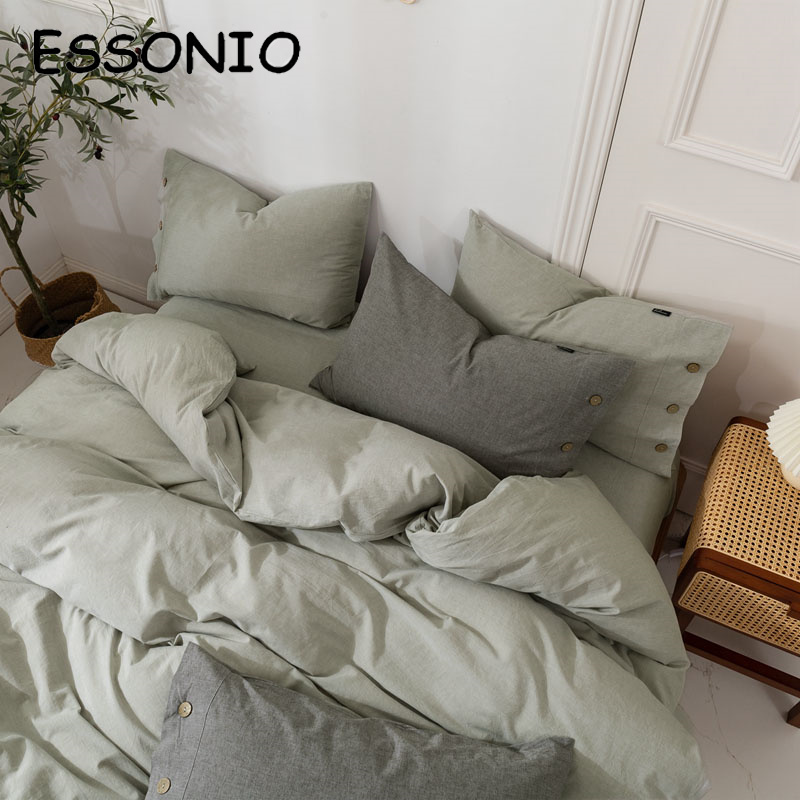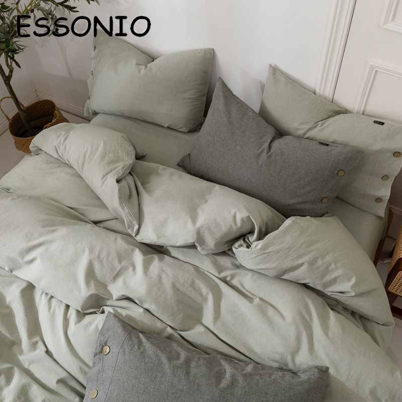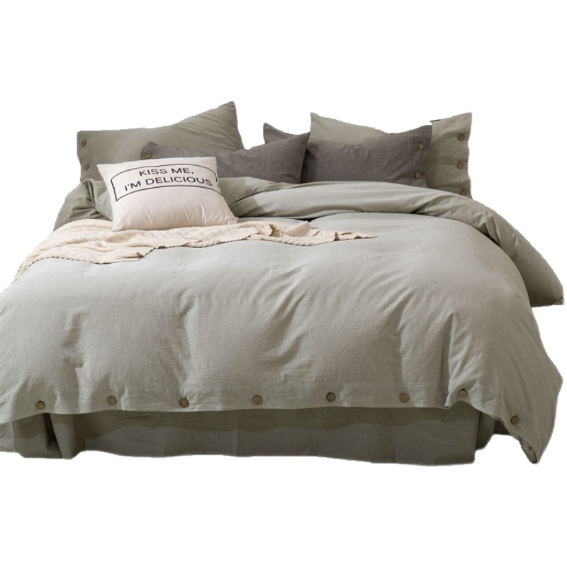 ESSONIO Japanese cotton linen four pieces of summer sensitive skin special pure colour linen quilt cover breathable bed bedding