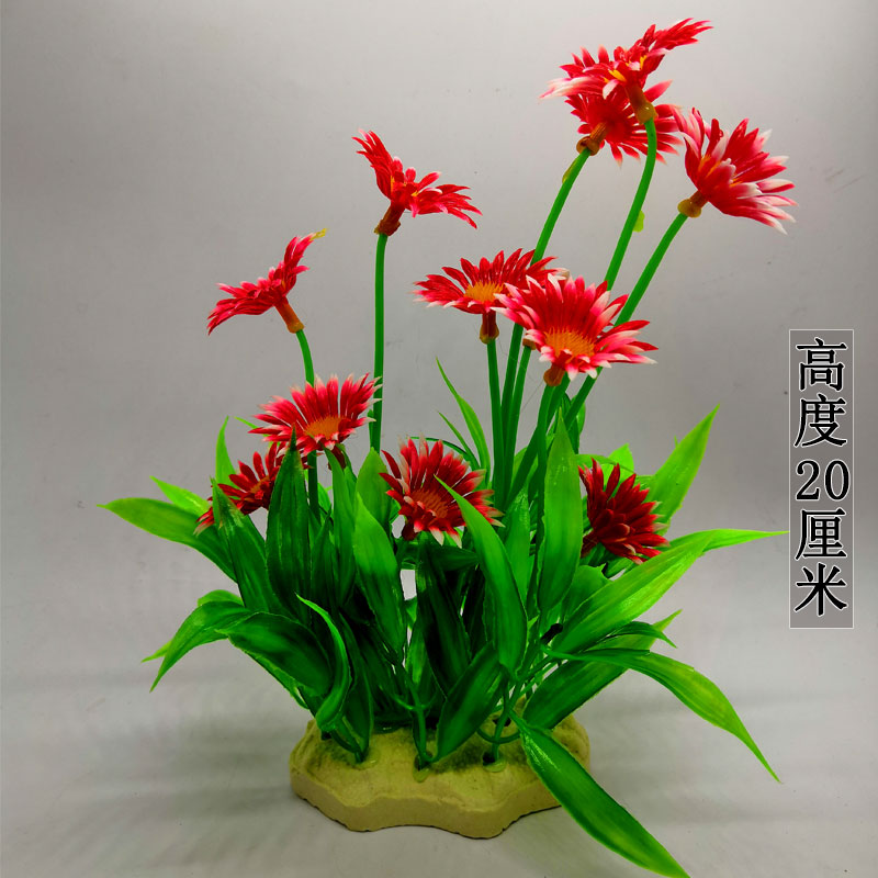 Water is free, height 20cm small and medium-sized fish tank landscaping decoration simulation plastic fake water grass flower decoration bottom set