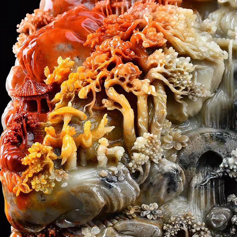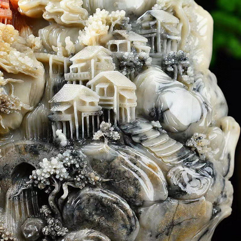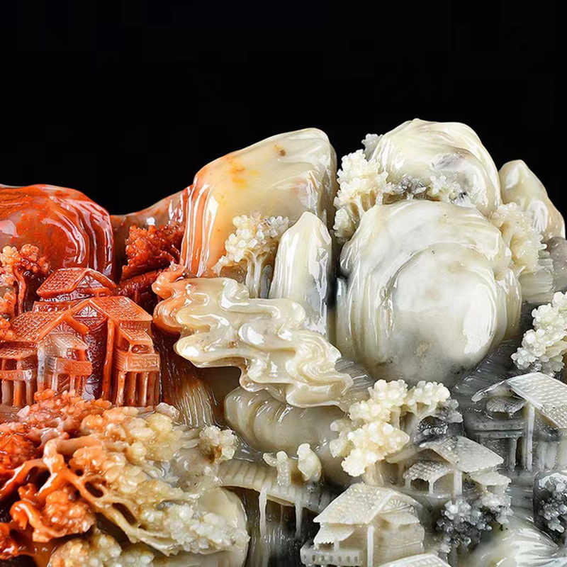 Fujian Shoushan Stone Mountain Riman's Family Swing Piece Clubhouse Decoration Furnishing Natural Chite Engraving Crafts Gift Pendulum Decoration Gift Collection Gift Collection