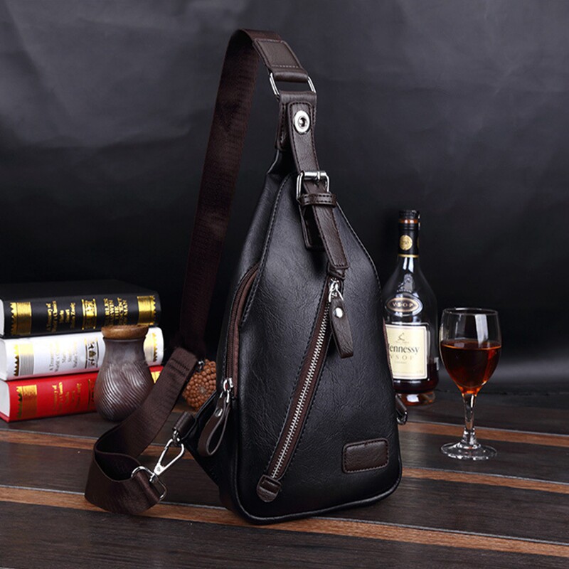 Hong Kong Duty-free Chest Bag Male Trend Casual Soft Leather Men 100 Hitch Texture Backpack Fashion Diagonal Satchel Shoulder Bag-Taobao