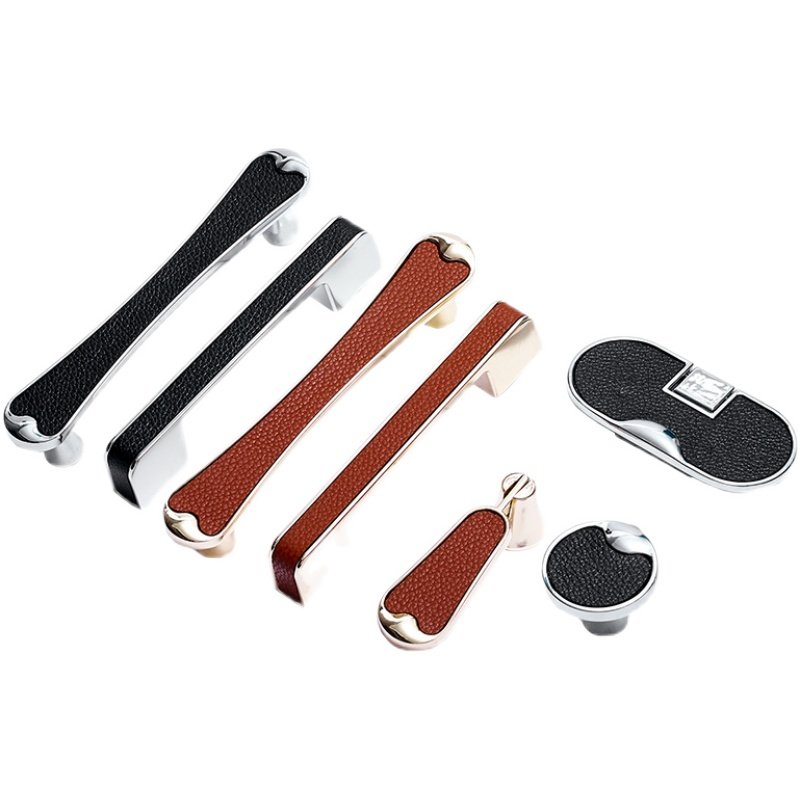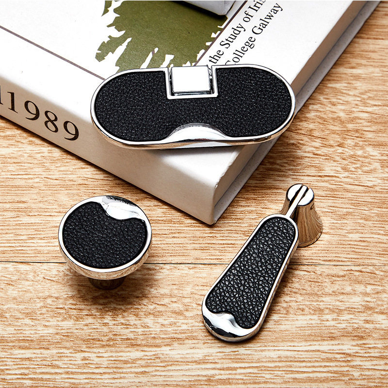 Simple leather handle cabinet drawer cabinet door zinc alloy handle single hole solid leather handle