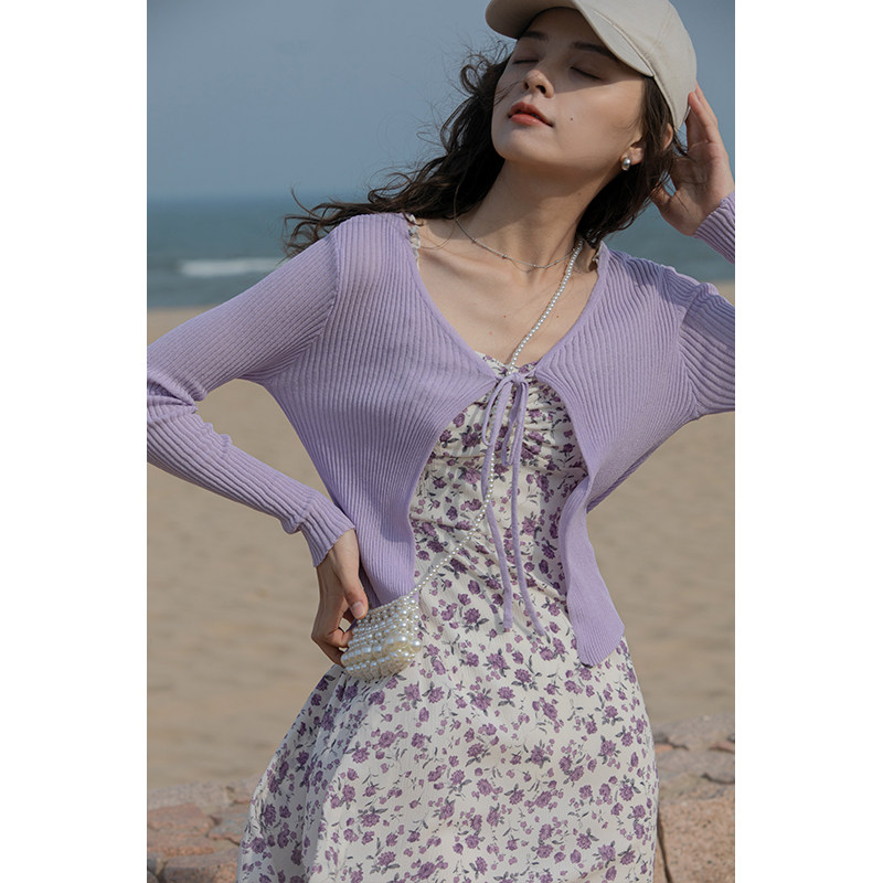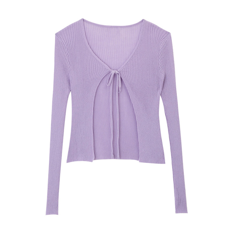 Morin ink brocade bandage design slim Western style thin solid color top women's 2021 summer Korean version long-sleeved sweater