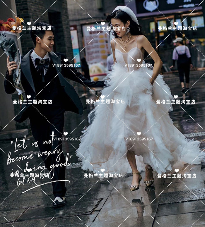 New movie themed wedding dress Fashion Street Beats lovers outfits Photography Costume Brigade Shooting Light Yarn Trailing Gown-Taobao