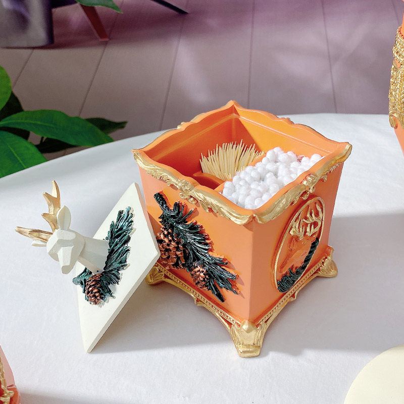 Eurostyle Creative Toothpick Box Fashion Home Bathroom Cotton Stick Box Individuality Elk Cotton Stick Containing Box Toothpick Jar Light Lavish
