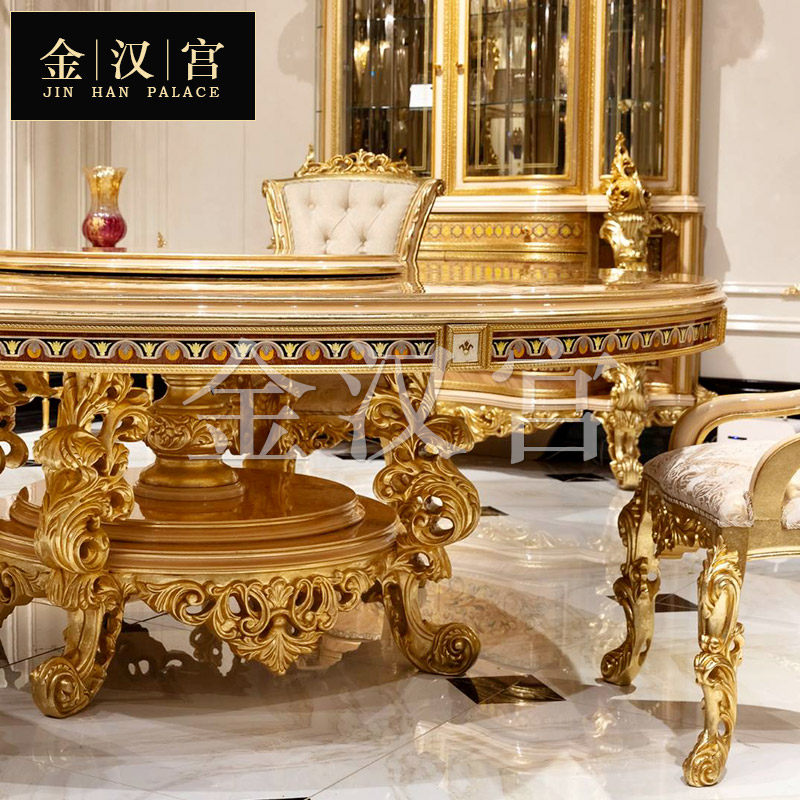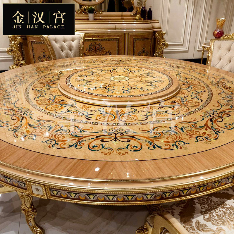 European-style luxury solid wood round dining table French palace parquet dining table and chairs wine cabinet combination villa high-end custom furniture - Taobao