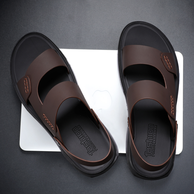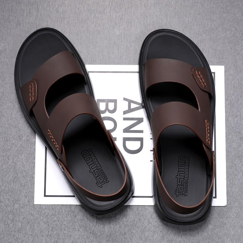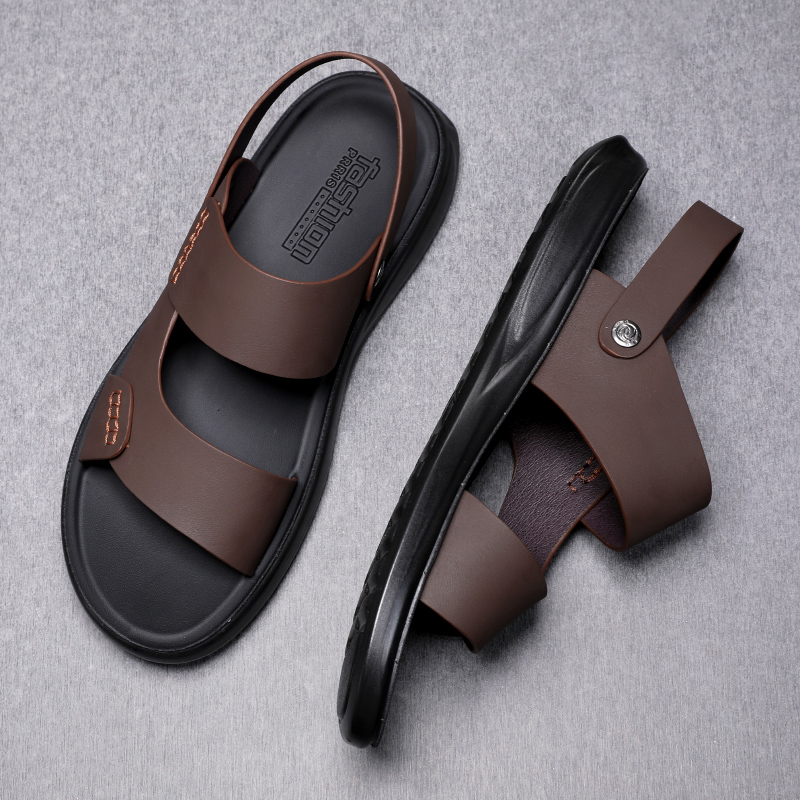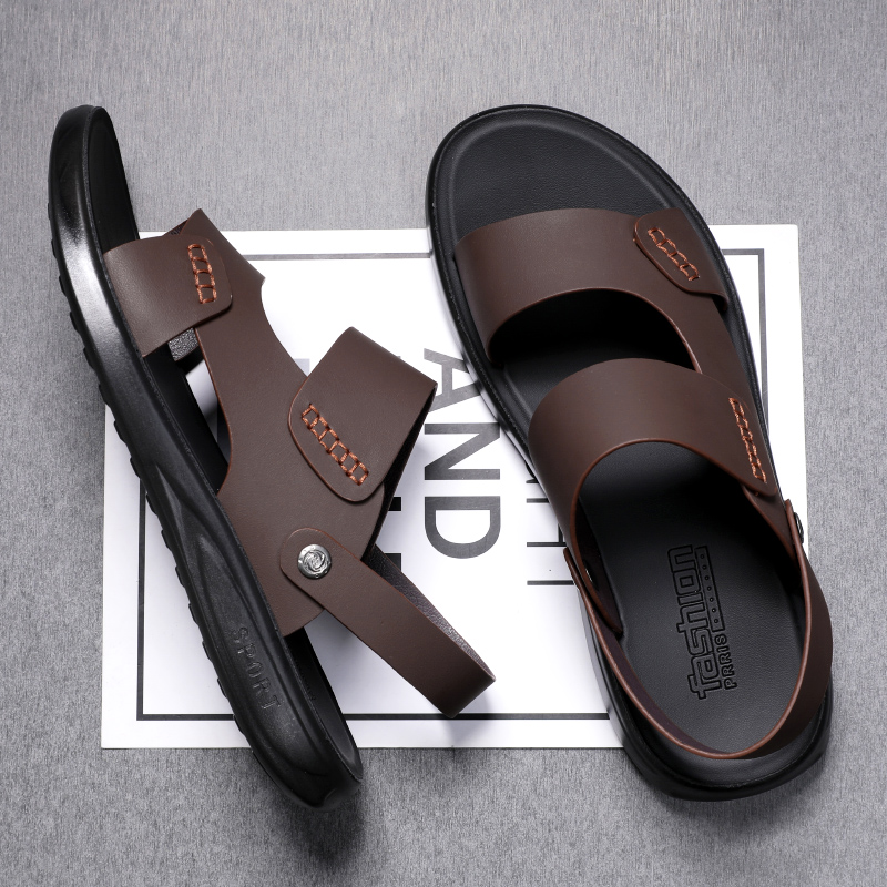 Men's sandals Summer casual outwear beach shoes genuine leather Driving dual-use slippers Soft bottom non-slip abrasion resistant leather sandals