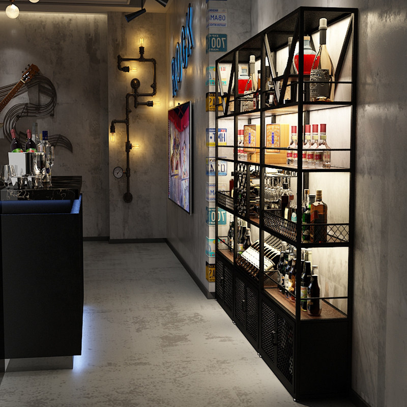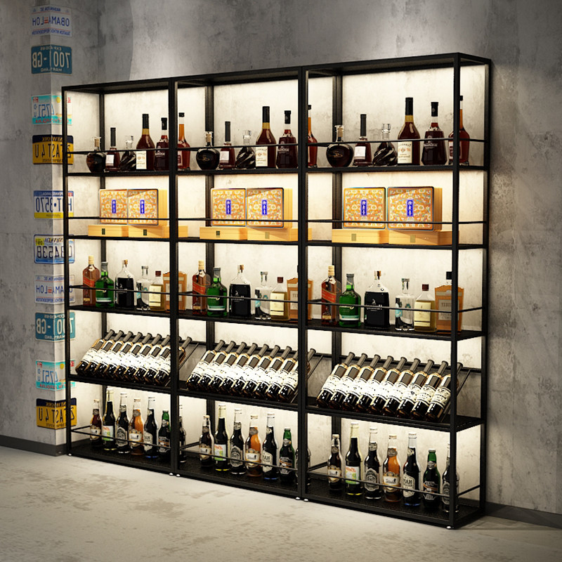 Wine rack rack red wine cabinet display rack commercial beer bar bar industrial wind floor iron wine cabinet