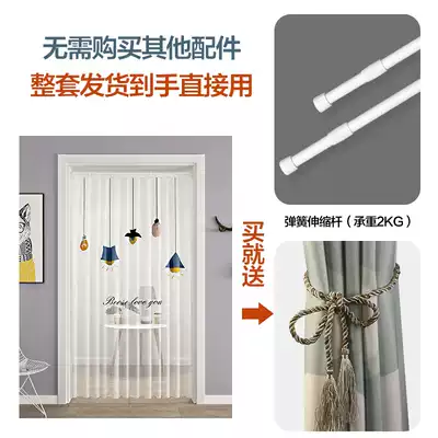 Door curtain gauze is transparent to people's floating window white gauze balcony yarn living room bedroom semi-shading yarn-free perforated telescopic rod