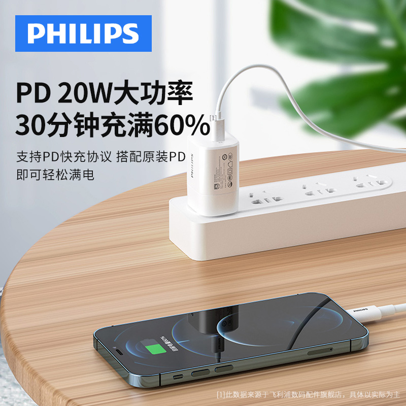 Philips Apple 13promax charging head pd20w fast charging plug flagship store for iphonexsmax12 universal tablet phone charger