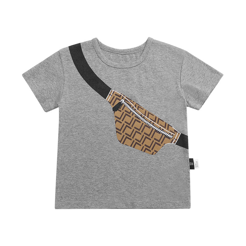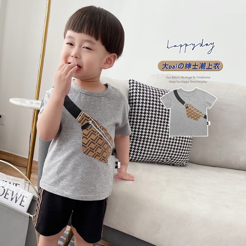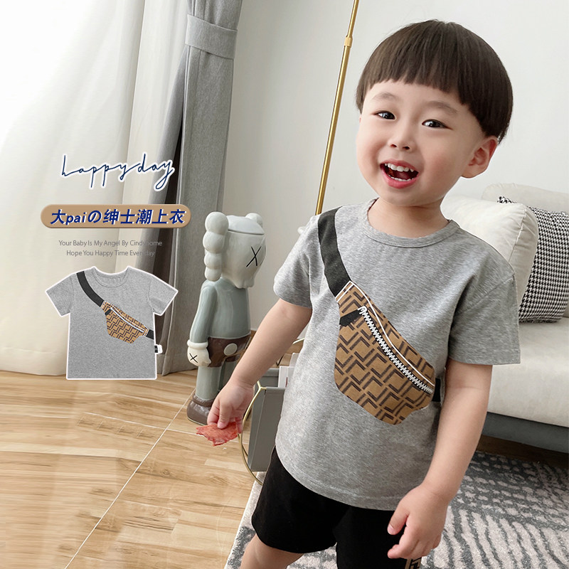 Small Shoulder Bag Printed Boy Summer Mount Round Collar Pure Cotton Summer Short Sleeve T-Shirt Mid-Child Children Baby Mesh Red Clothing