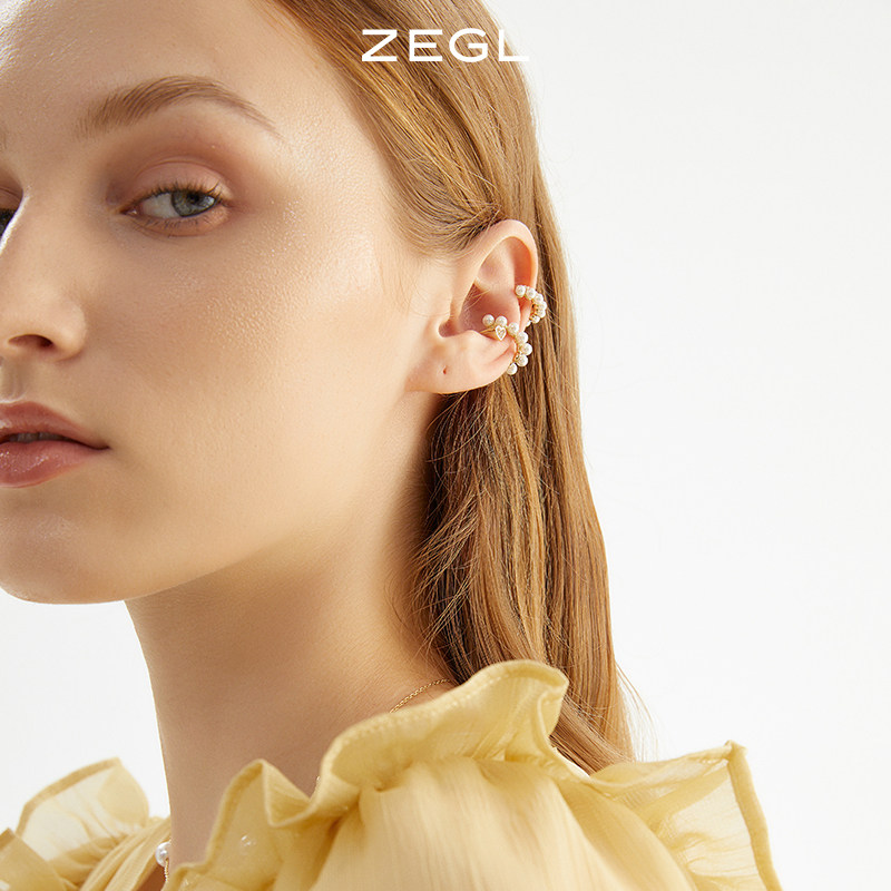 ZEGL Designer Advanced Sensual Pearl Ear Clip Female Light Lavish Retro-Ear Bone Clip Earrings Without Earhole Ear Ornaments
