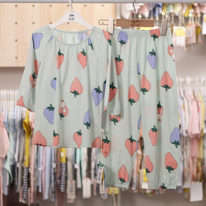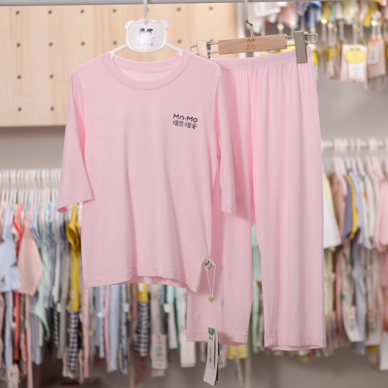 Mao En Mao Ai Summer Girls Thin Short Sleeve Pajama Pants Set Parent-Child Homewear Cotton Modal Ninth Sleeves