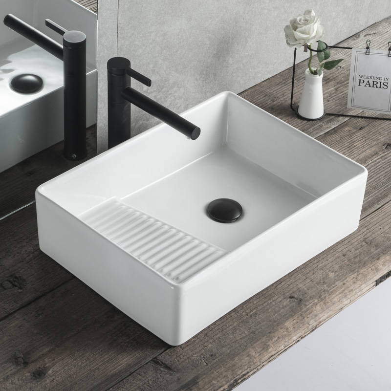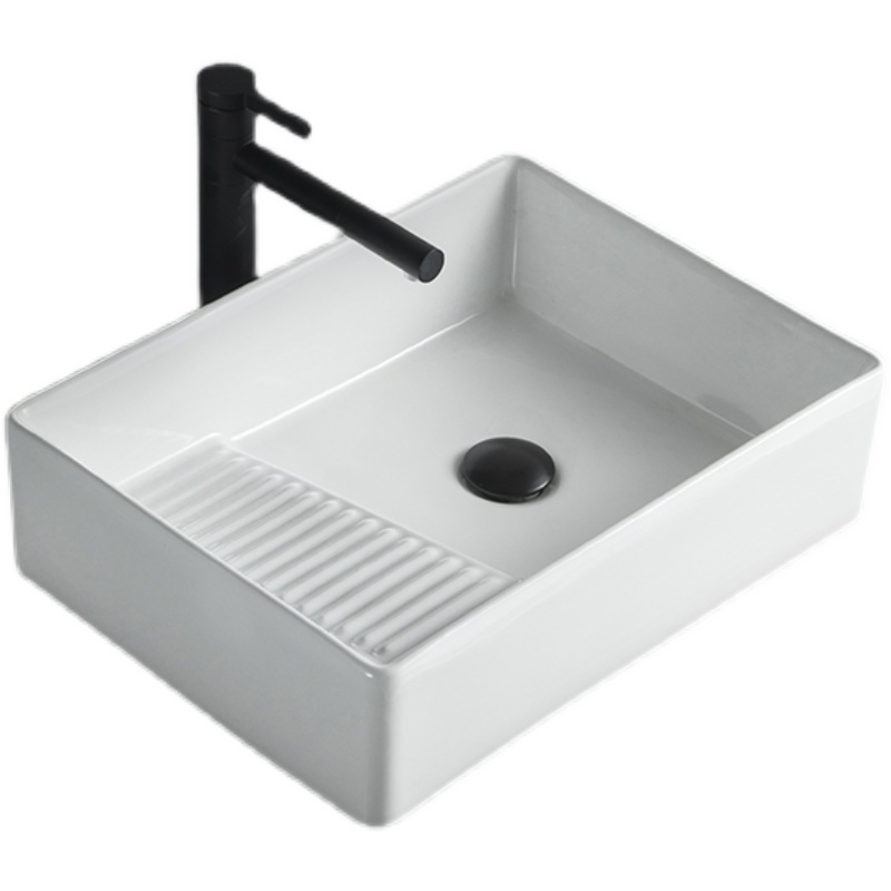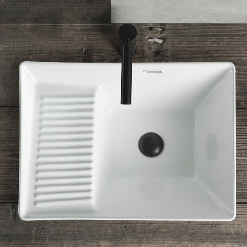 Podium tub side launching pad Laundry basin with washboard side drain Terra basin Ceramic Balcony Wash Basin Single Sink