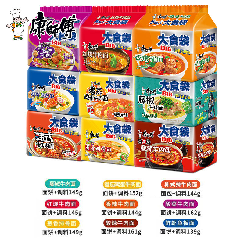 Master Kong Instant Noodles Wholesale FCL Instant Noodles Bags Big Food Bags Braised Beef Mix and Match Night Supper Flagship Store Official Website
