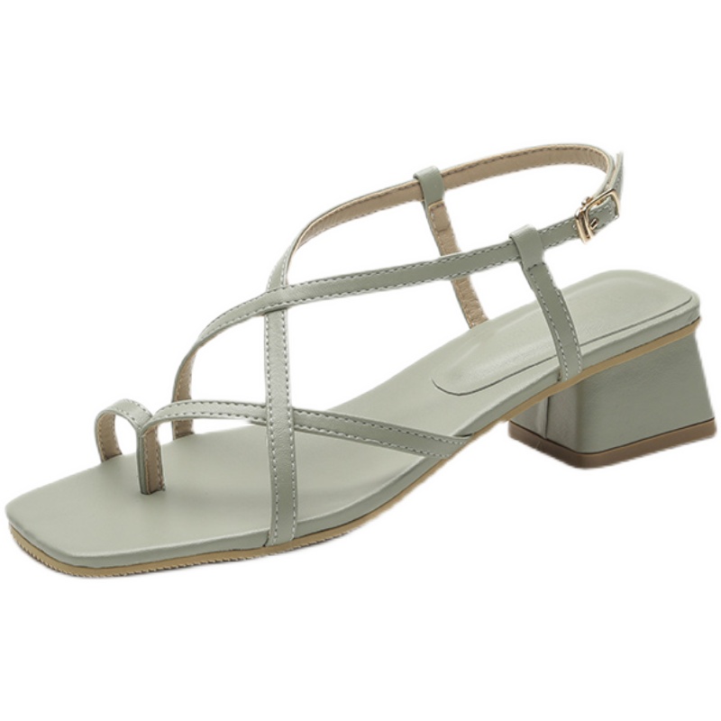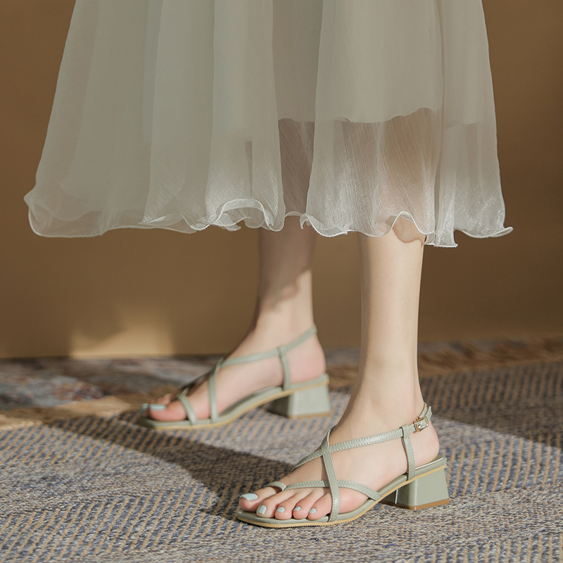 T-strap chunky heel cross strap buckle thin strap combination Roman style