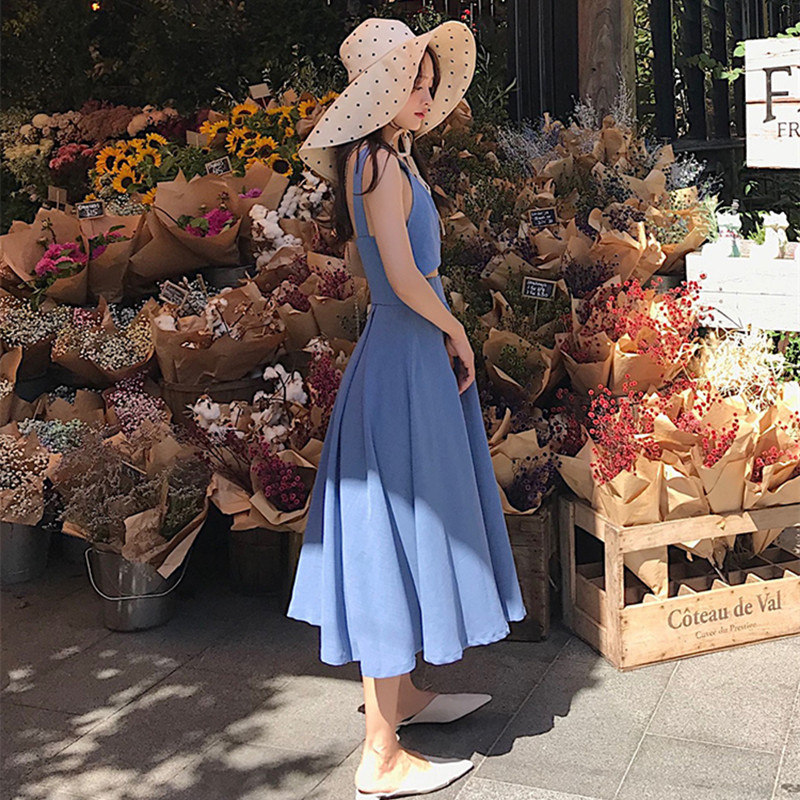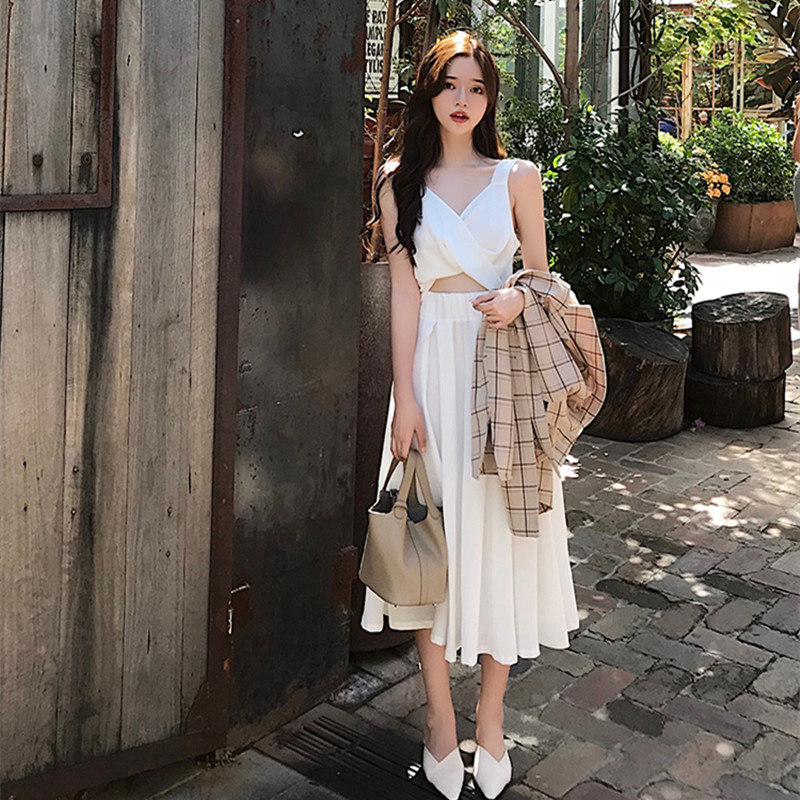 2022 summer new high-end long dress cold wind women's French design sense niche suspenders dress chic