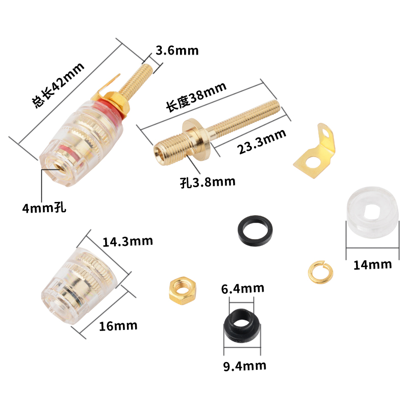 Copper gold - plated crystal plug of plug of amplifier sound and length terminal 4MM banana socket horn