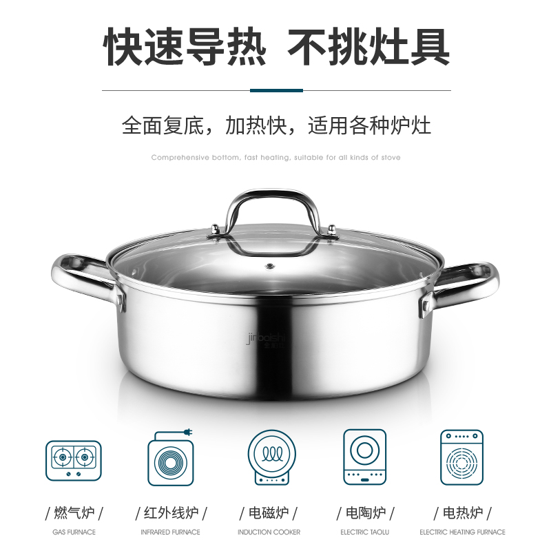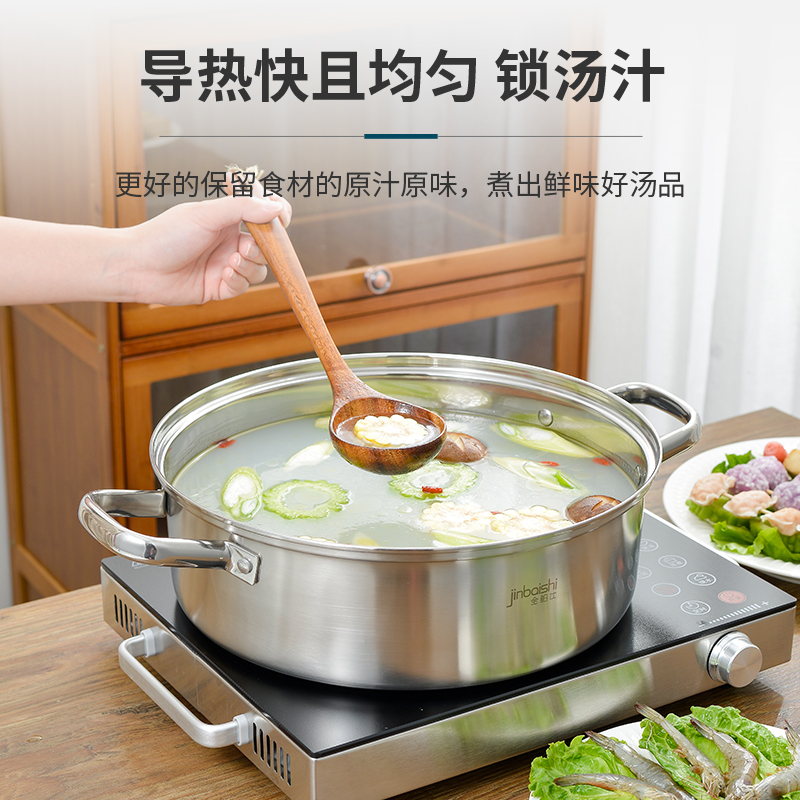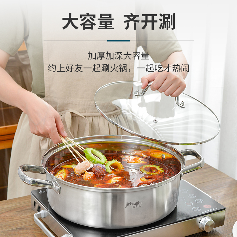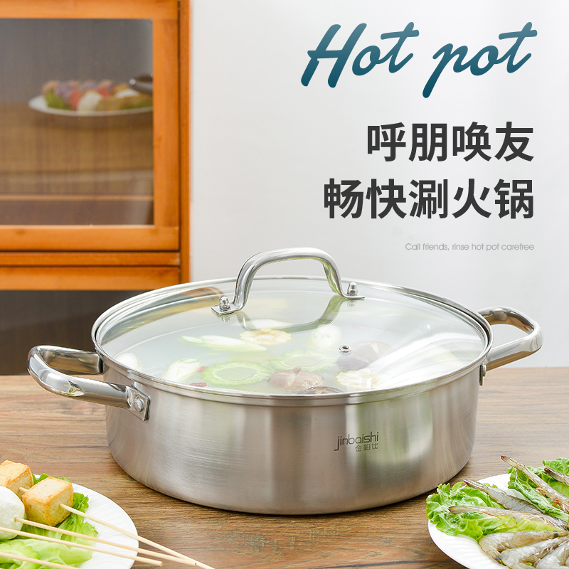 Jinbaishi soup pot 304 stainless steel household induction cooker hot pot special pot gas stove universal cooking pot thickened