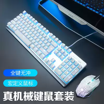 Wolf Tuzhen mechanical keyboard Gaming dedicated mouse set Green axis tea axis Red axis Internet cafe computer silent feel wired typing 104 keys girls and boys four axis optional three-piece set
