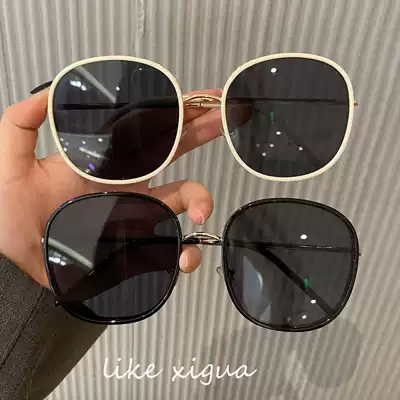 Korean version of the new milky white big frame thin sunglasses retro personality anti-UV driving sunglasses Net red same model