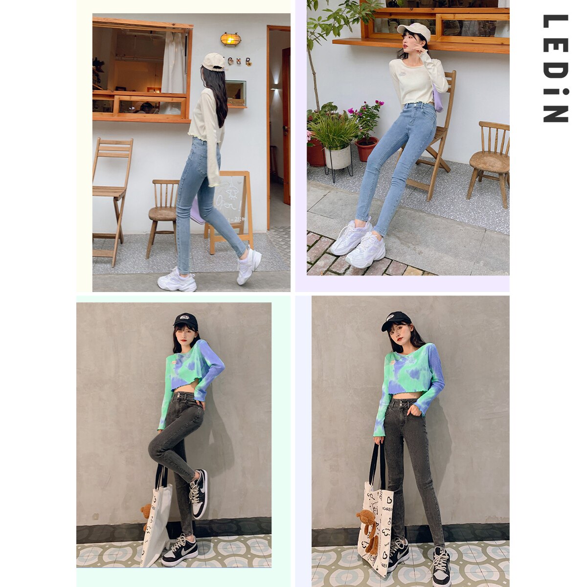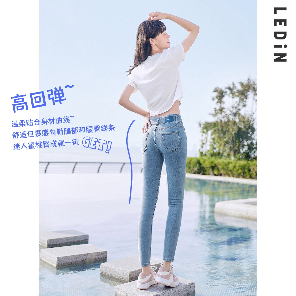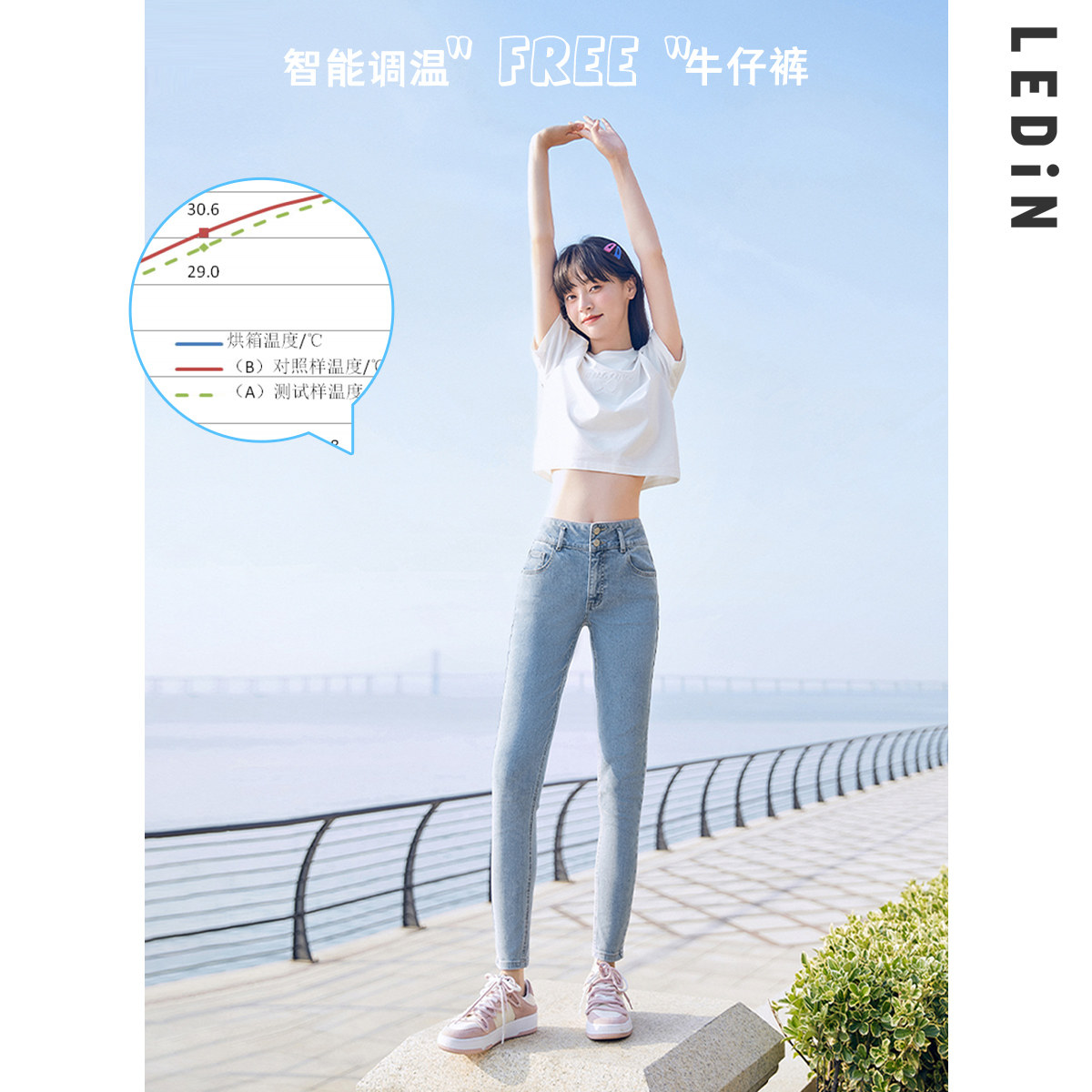 Leding high-waisted fleece jeans women's 2022 spring new pants temperature-adjusting tight-fitting narrow-pipe pants elastic slim pants